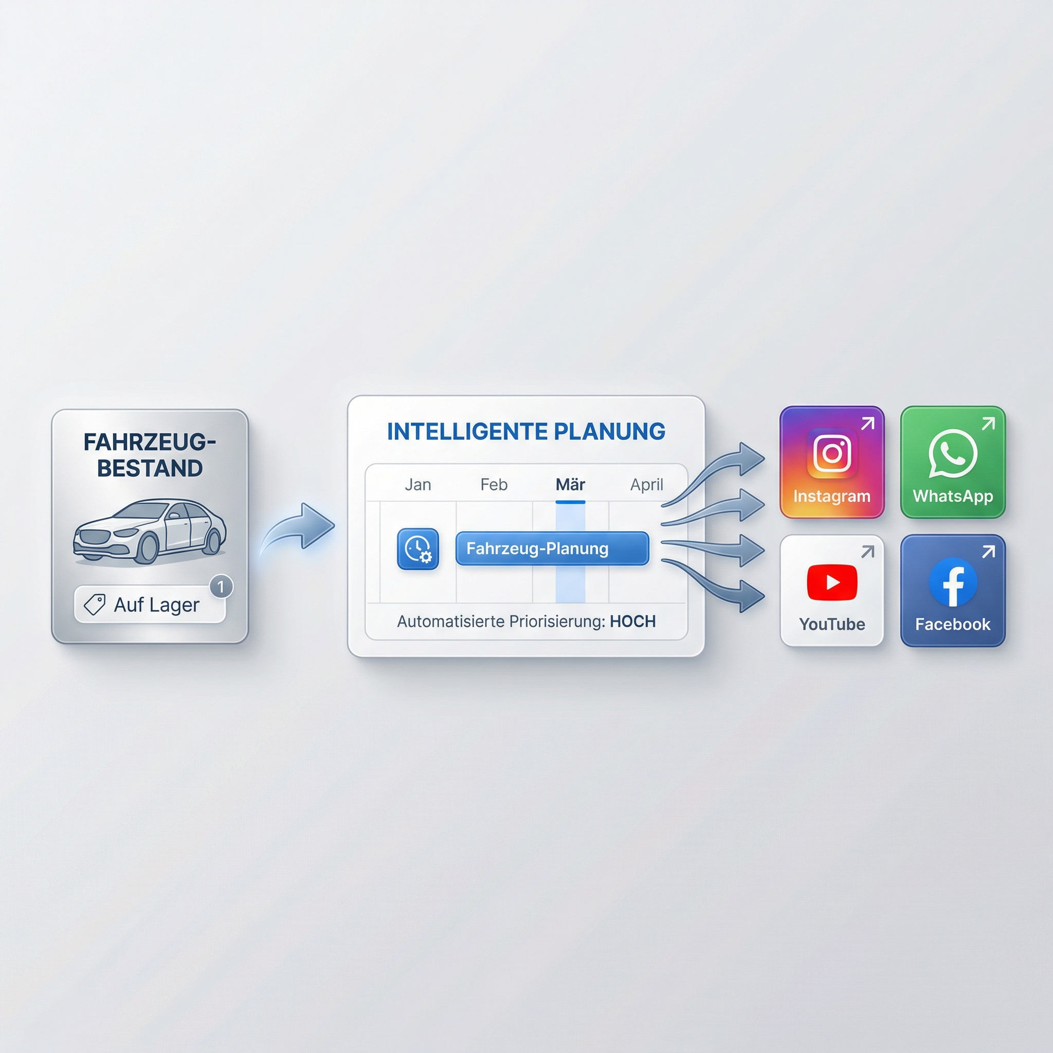 Ihr Autohaus steuert Instagram, WhatsApp, YouTube und Facebook nicht länger einzeln, sondern in einer klaren Struktur.